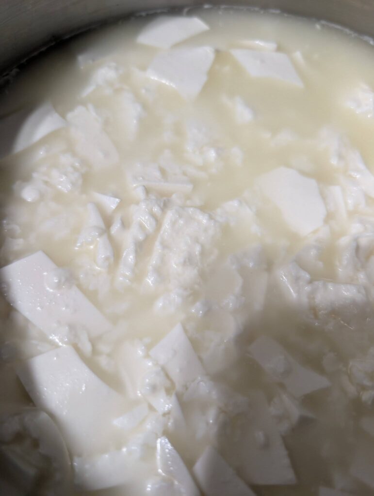 Because cottage cheese curds are so delicate at most stages, you’ll want to recover and give the curds another 20 minutes off the heat to stabilize.